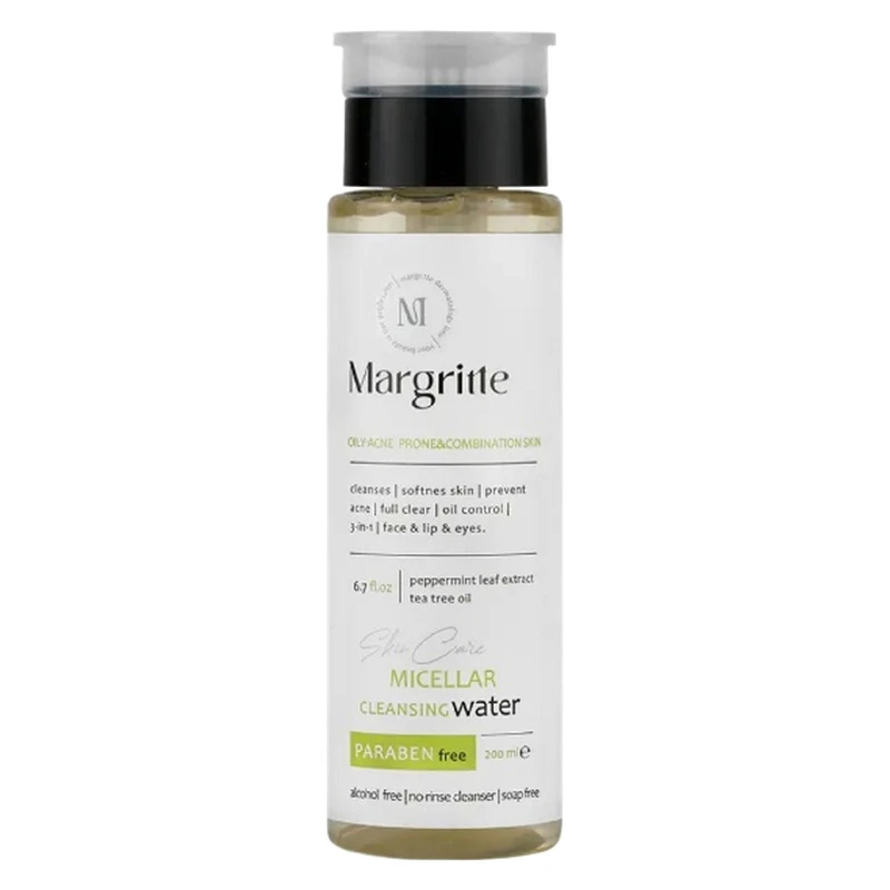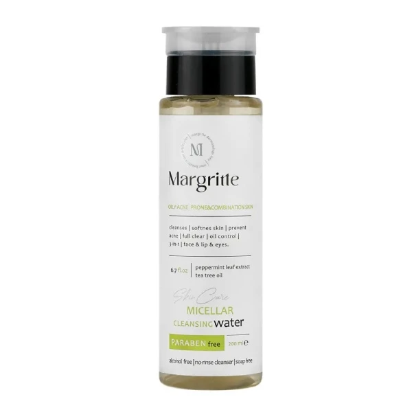 میسلار واتر مارگریت پاک کننده آرایش چند منظوره در تنظیم PH سطح پوست و مرطوب کننده و جوان کننده پوست موثر می باشد. این محصول چربی اضافی پوست را گرفته و منافذ باز را نیز کاهش میدهد. فرمولاسیون این محصول فاقد الکل، مواد صابونی و پارابن است و پس از استفاده نیازی به شستشوی صورت نیست