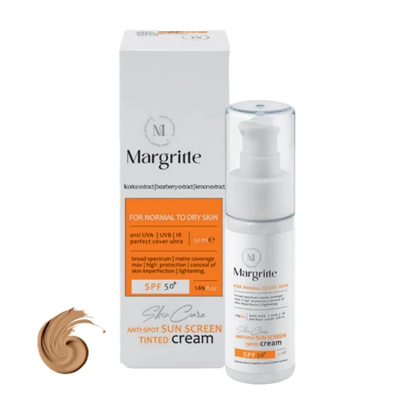 کرم ضد آفتاب رنگی مارگریت SPF 50 مدل01 محافظ UVA ،UVB، روشن کننده مناسب پوست های نرمال تا خشک حجم 50میلی لیتر